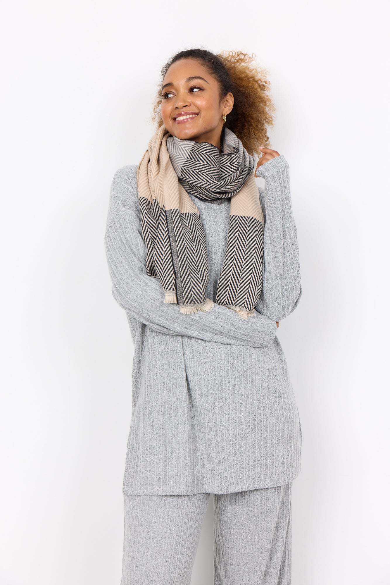 SC-ILSEBET 1 wertet Ihren Look mit Accessoires auf, die aus einer komfortablen Mischung aus 65% Polyester und 35% Viskose bestehen. Das Design zeigt ein Fischgrätenmuster mit einem Fransenbesatz, der dem Accessoire Textur und einen klassischen Reiz verleiht. Dieses Stück kann eine Reihe von Outfits ergänzen, von Bürokleidung bis hin zu einem lässigen Wochenendlook, und bietet sowohl Wärme als auch einen Hauch von Raffinesse.65 % Polyester, 35 % Viskose